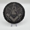 This is a 4″ circular coaster engraved with a Bald Eagle, along with the Square and Compass. Each coaster will have 4 felt pads to prevent scratching.