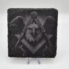 This is a 4″ square coaster engraved with a Bald Eagle, along with the Square and Compass. Each coaster will have 4 felt pads to prevent scratching.